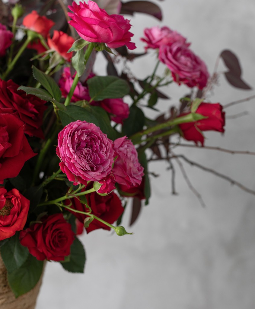 Композиция в корзине, "Гранатовый браслет"